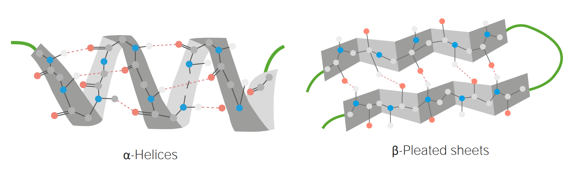 Imagen por Lecturio.La estructura única de una proteína (primaria, secundaria, terciaria y cuaternaria) le otorgará propiedades físicas y químicas que son importantes para la función de la proteína. Algunas de estas propiedades incluyen: