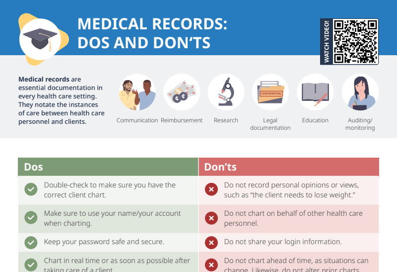 Medical records, often referred to as health records or medical charts, are systematic documentation of a client’s medical history and care over time.
