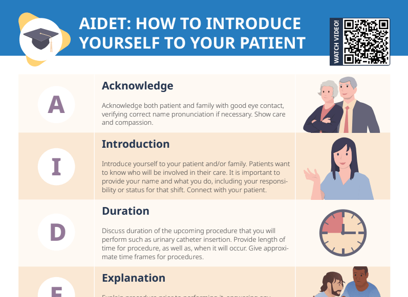 People want to know who will be involved in their care. Providing your name and what you do, including your responsibility or status for that shift, can help them feel more comfortable and connected with their care team.